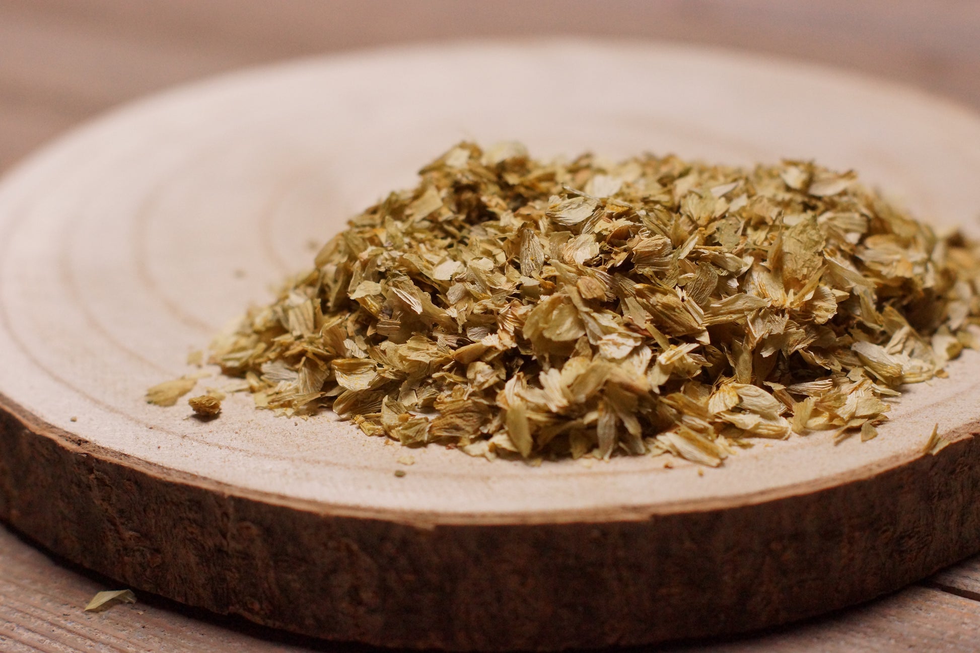 Le cône de houblon coupé ( Humulus lupulus ), communément appelé simplement « houblon », est surtout connu comme ingrédient de la bière, mais c'est aussi une plante médicinale puissante aux propriétés calmantes, hormonales et digestives . Le cône de houblon coupé est l'inflorescence femelle séchée et coupée du houblon.