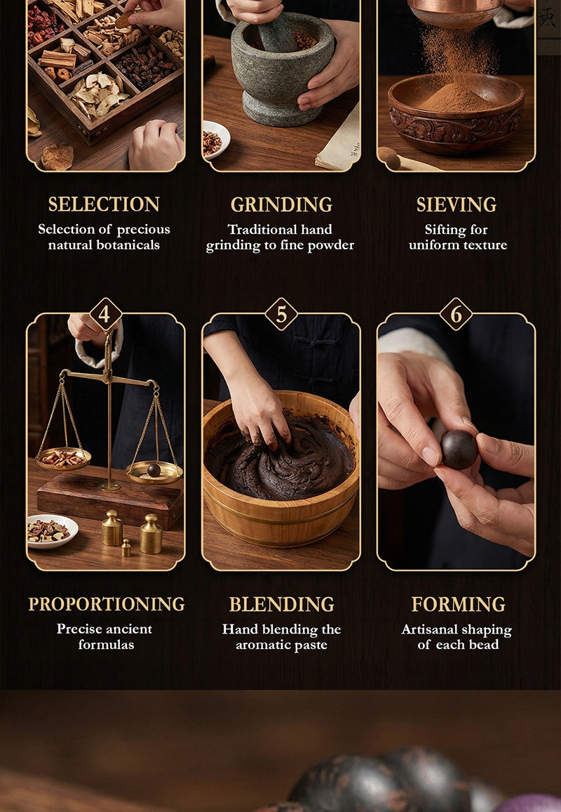 De samenstelling van deze kruidenarmband is geïnspireerd op traditionele composities die vaak geassocieerd worden met kalmering en balans. Door de warmte van je huid kan een fijne, natuurlijke geur vrijkomen — nooit overheersend, wel aanwezig.