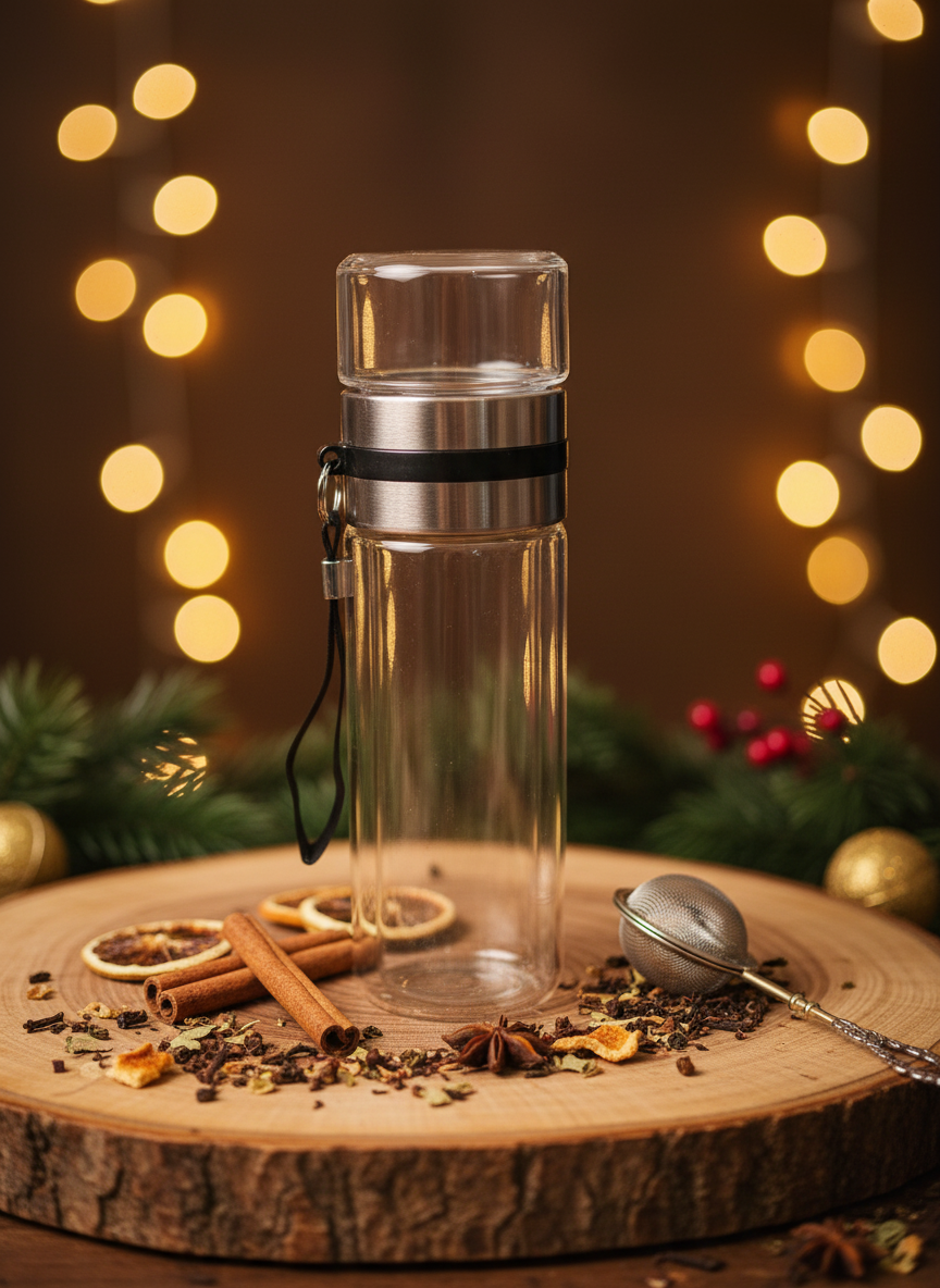 ✨ Glazen thee drinkbeker met ingebouwde theefilter – ideaal voor op het werk of onderweg