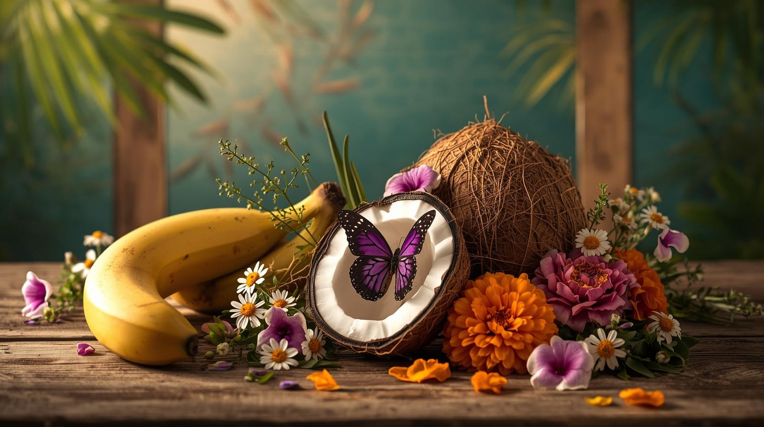 Banaan, kokos, kamille, kittelbloem, verveine, goudsbloem, aroma
