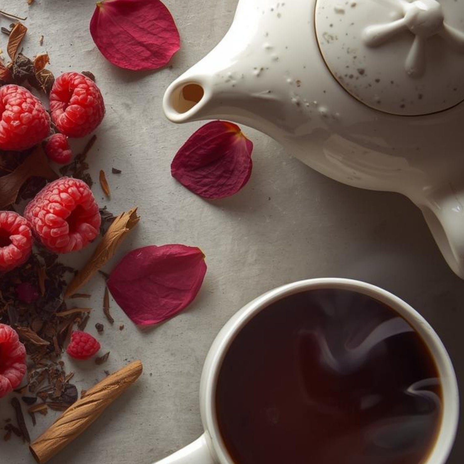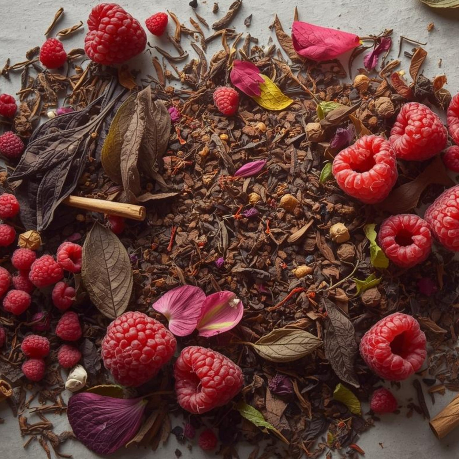 Met zijn dieprode kleur, subtiel bloemige toets van rozenblad en het rijke aroma van frambozenblad en frambozenstukjes, is deze losse thee niet alleen heerlijk, maar ook een lust voor het oog. Een geurige, visuele en smaakvolle ervaring – perfect voor elk moment van ontspanning.
