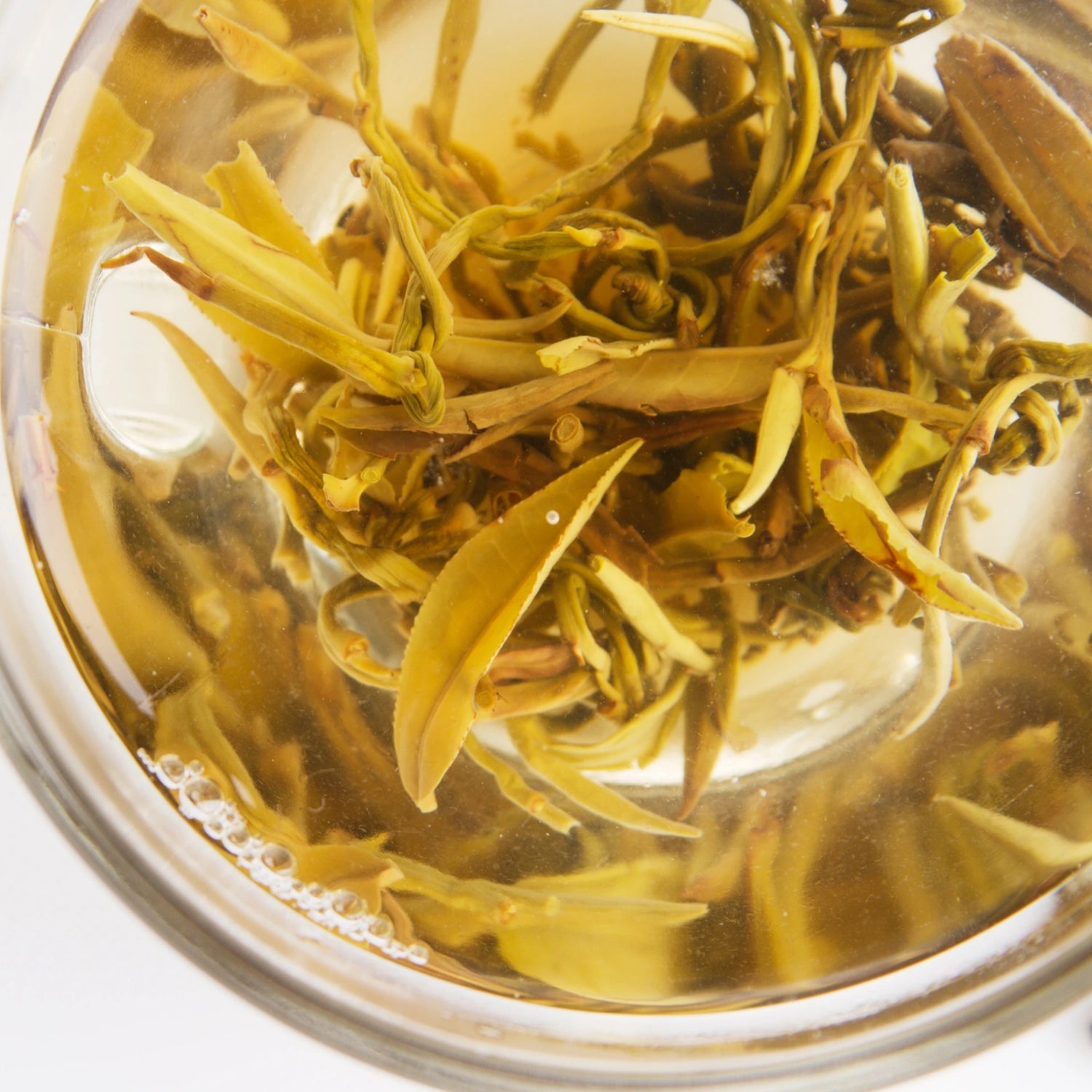 De theeblaadjes herken je meteen aan hun elegante zilverwitte dons. Ze getuigen van vakmanschap en kwaliteit. Bij het zetten ontvouwt zich een heldere, lichtgele infusie met een verfijnde smaak – bloemig, zacht en licht zoet – die elke slok tot een beleving maakt.